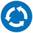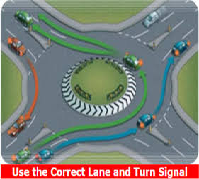 Going left: use the inside of the roundabout or choose the inner lane if two lanes are present (green arrows)