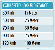 Keep to the speed limit, especially to 50 kmh (km per hour) in town.